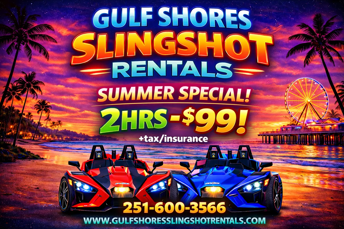 At Gulf Shores Slingshot Rentals, we bring the thrill of the open road to the Alabama Gulf Coast